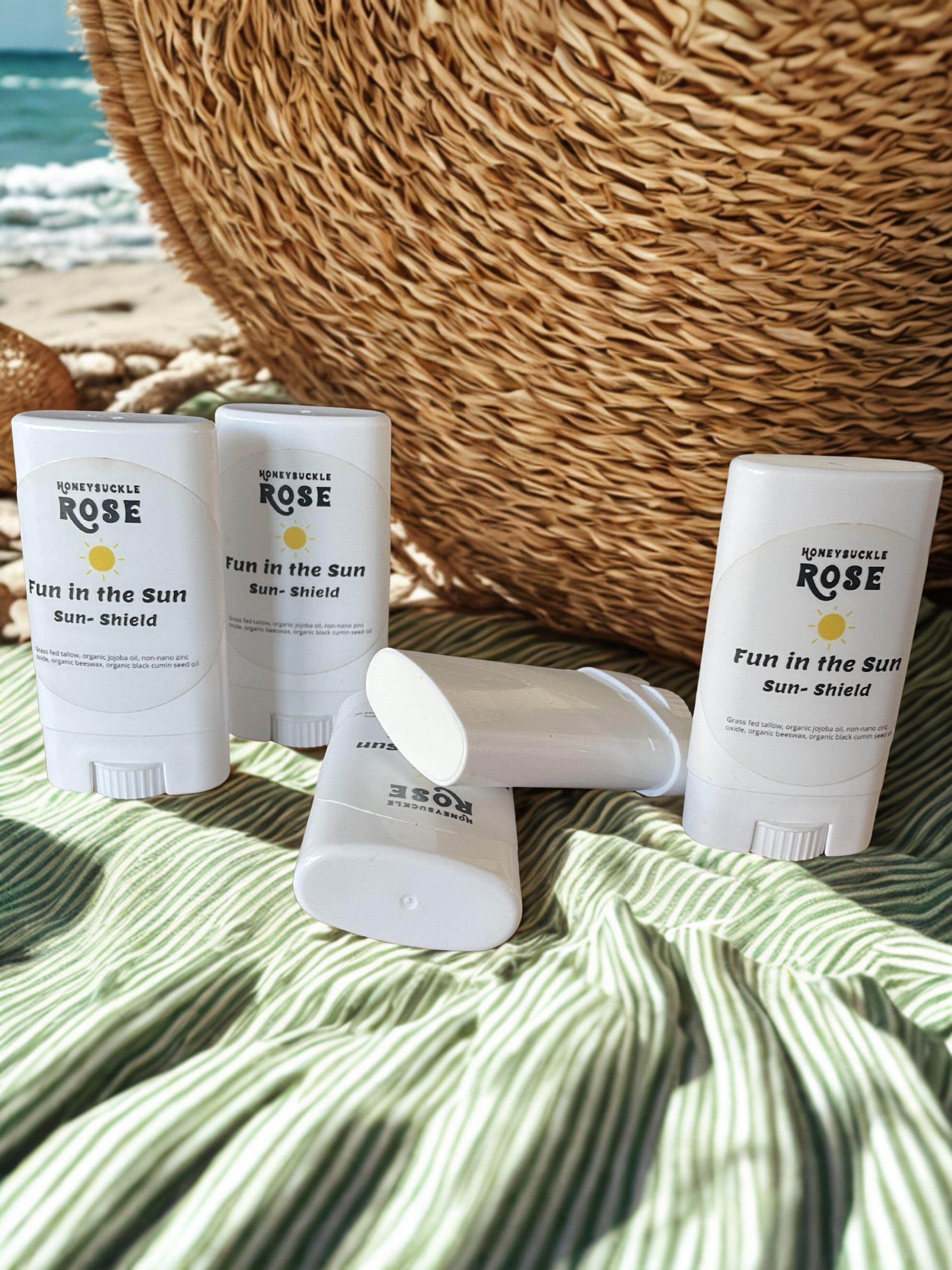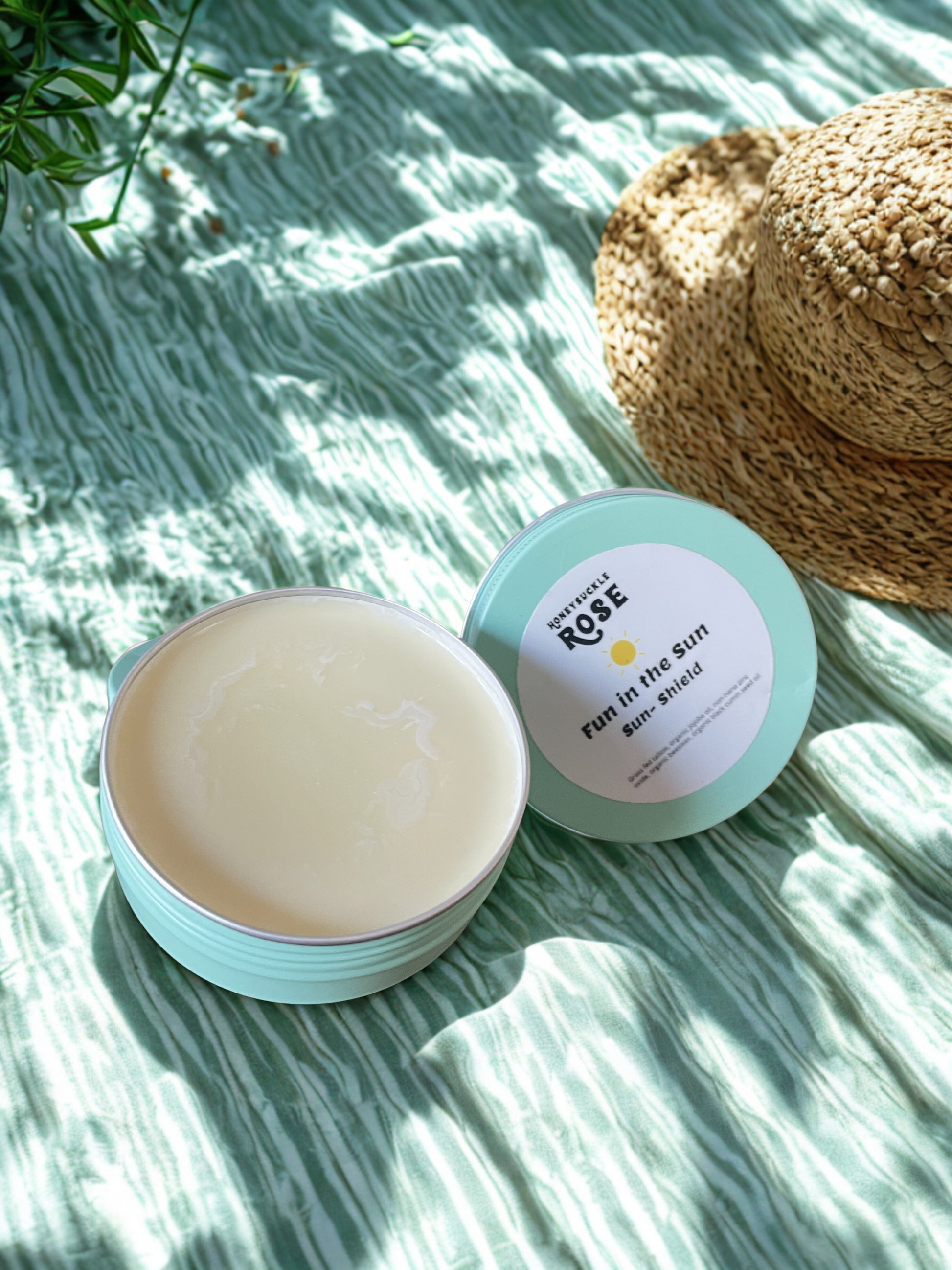Our Sun Shield set includes the convenient Sun Shield stick and the large Sun Shield tin.